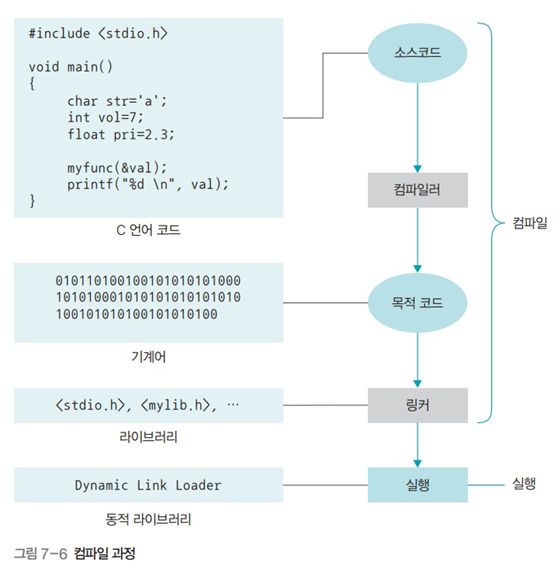 오늘날의 프로그래밍에서는 라이브러리 구문을 비워놓고 컴파일한 이후에 비워둔 실행코드를 라이브러리에서 가져와 실행한다.
