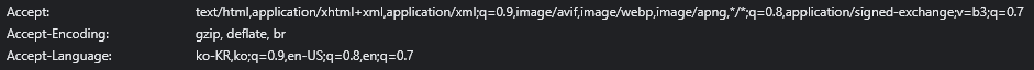 Accept-language: ko-KR,ko;q=0.9,en-US;q=0.8,en;q=0.7