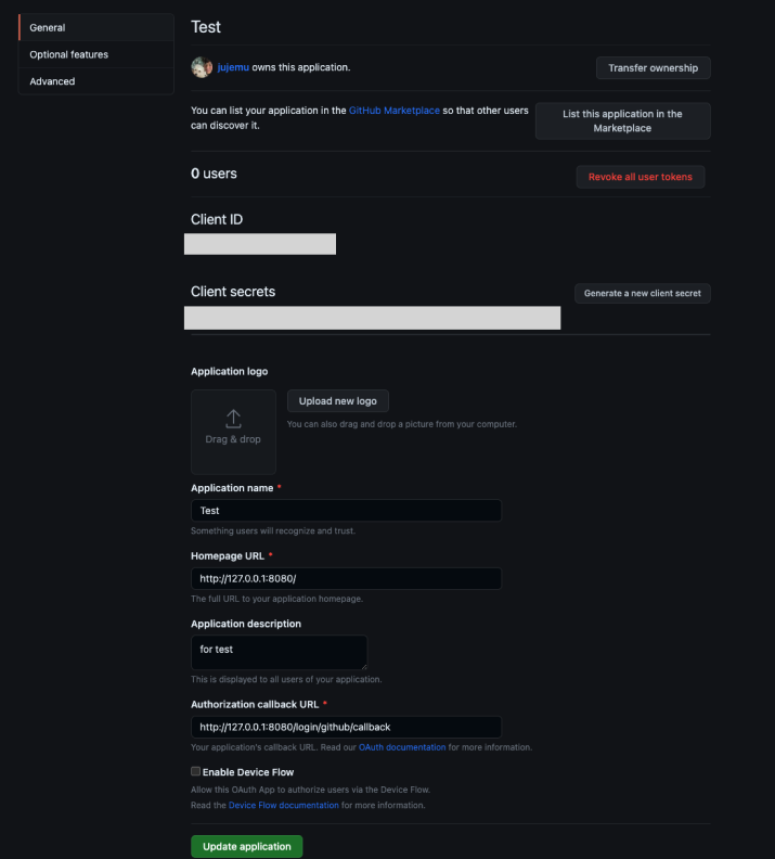 Github에서 얻으려면 먼저 Github Auth server에 등록해야 한다.