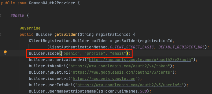 기본 scope로 "openid, profile, email"