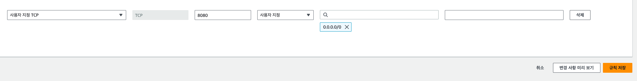 우선 EC2 보안그룹에 포트를 추가해야 젠킨스로 접근할 수 있습니다.