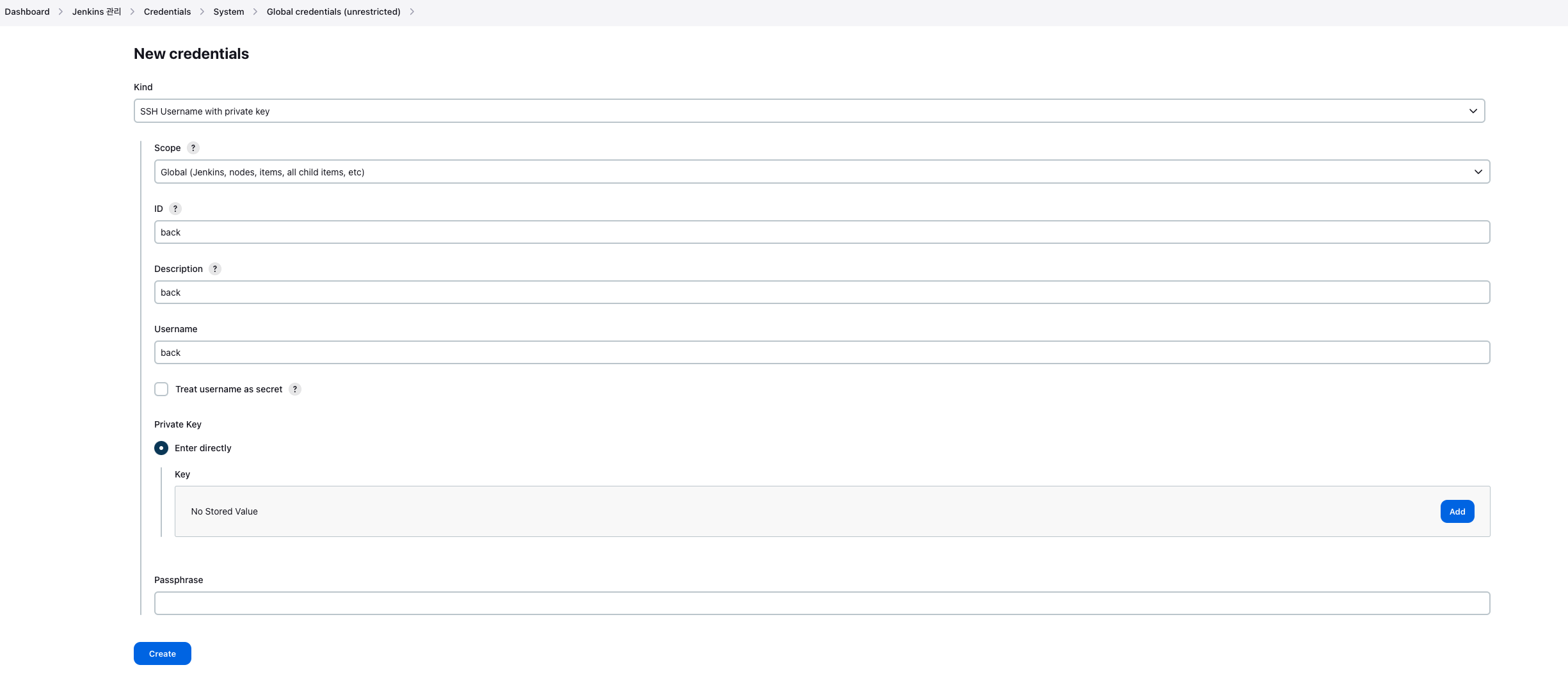 Dashboard -> Jenkins 관리 -> Credentials로 들어가서