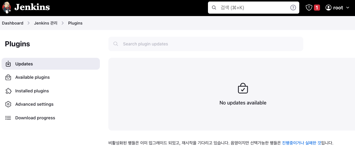 위 그림처럼 Dashboard -> Jenkins 관리 -> Plugins로 들어갑니다.