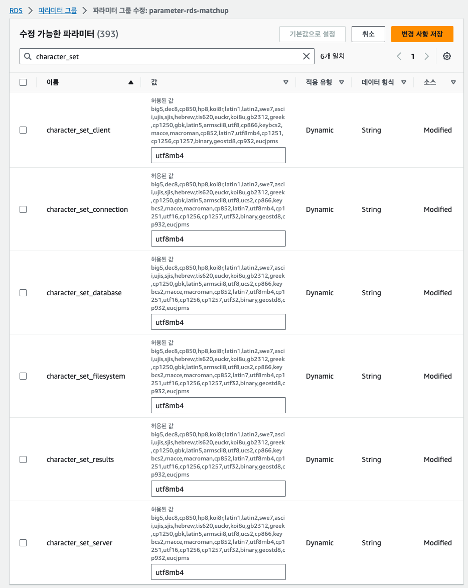 character_set으로 검색해서 나온 항목들을 모두