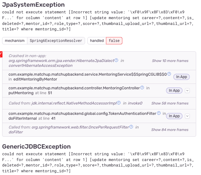 위 내용으로 적용하고 나서 일부 이모지는 저장이 되지만 일부는 여전히 에러를 발생하는 것으로 확인했다.