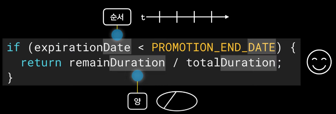 아래처럼 동작 중간에 의미를 변수와 함수로 표현하여 의도를 전달할 수 있다.